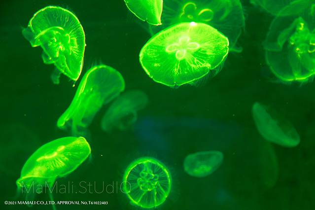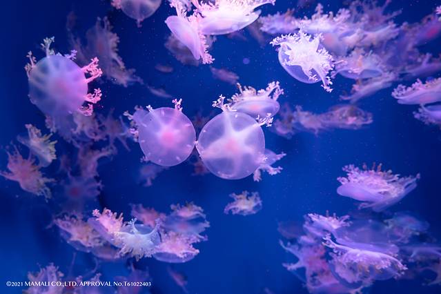 入园之后,我们首先去了梦幻水母宫。超梦幻的水母,不要错过哦!这群与大海融为一体的小精灵拥有如水般的舞姿,它们的身体外形就像一把透明伞姿态各异,不变的就是那一份优雅灵动,飘逸的长丝带,梦幻的圆形舞裙,是海里姿态最高傲的芭蕾舞者。