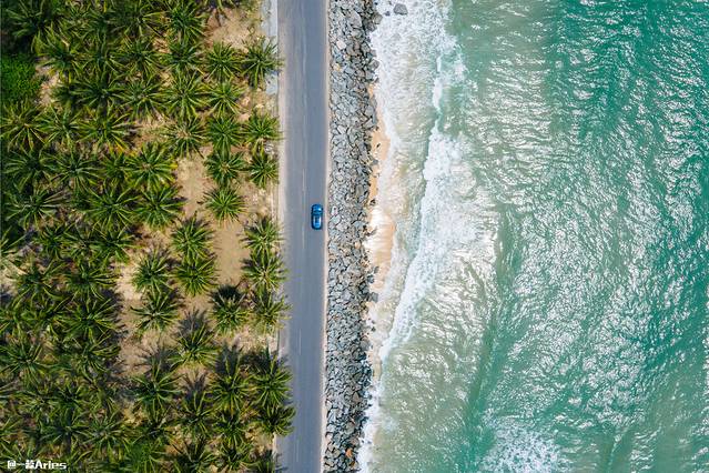 自驾在这条滨海公路上,一半是白沙碧海蓝天,一半是椰林树影,就像驶入了一幅风景画中,简直不要太赞了!除了美景,这里也是个远离城市喧嚣,有浪花、海风、滑板和少年的冲浪圣地。