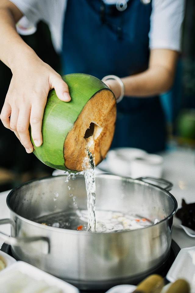 椰子水甘甜美味,高温催逼出鸡肉多余的油脂,椰汁的清甜浸入鸡肉的每一个细胞。