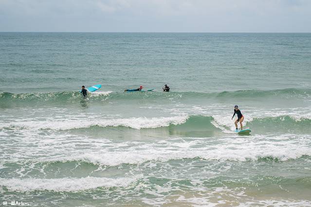 海蓝水清,海浪形状规律且持续性较长,很适合想尝试冲浪的初学者。