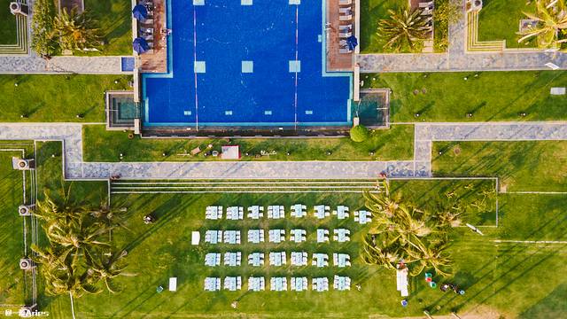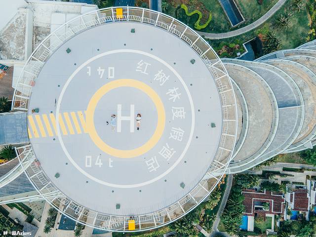 这家酒店本身就自带网红属性,很多拍照的区域都逼格满满,例如这个海棠湾唯一的空中停机坪,位于酒店的33层,站在停机坪上可以360度的俯瞰整个海棠湾,那种君临天下的感觉,简直太震撼了!