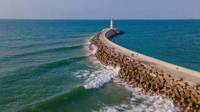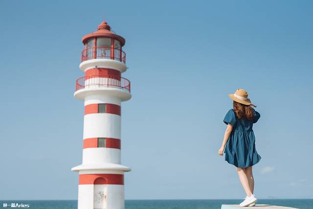 在微曦的晨光和碧蓝大海的映衬下,红白相间的灯塔格外梦幻,仿佛是走入了漫画世界里,怎么拍都很美呢!