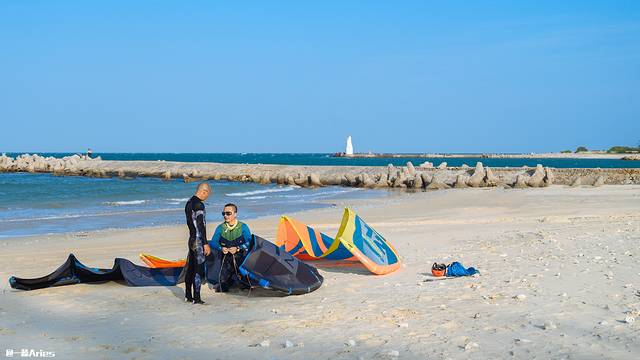 下午风起云涌,偶尔会看到抱着冲浪板的大叔微笑的走过,季节性的海风吸引了很多风筝冲浪的爱好者在此聚集。
