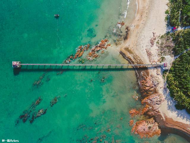 一侧碧水蓝天,一侧椰林万顷,是360度无死角的美。