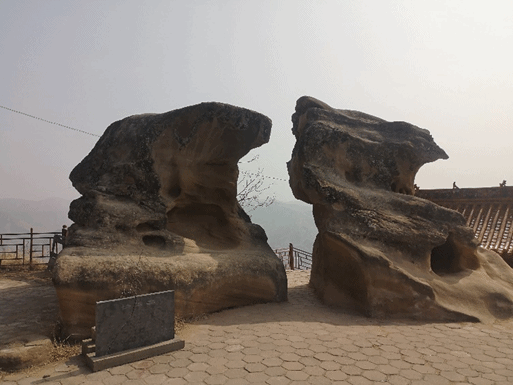 崇峰寺大殿前的情侣石,有个美丽的传说。古时有一位富家小姐与家仆相恋,遭其父胁阻,二人私奔到此决意殉情。恰遇吕洞宾云游过此,感其真爱,便点化二人成仙,只留下这对情侣石了断家人寻觅之想。