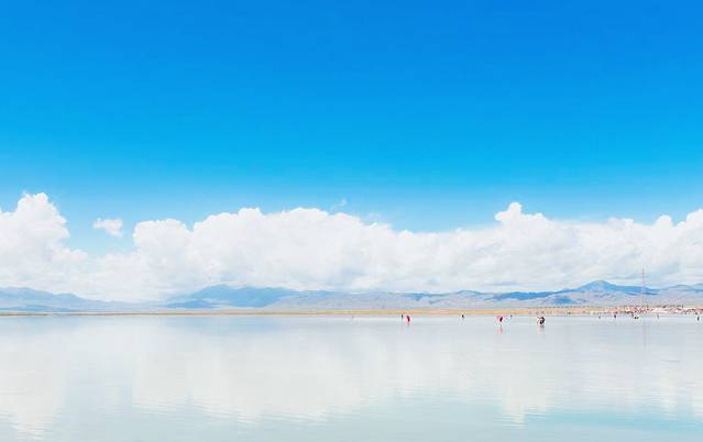 茶卡盐湖的日出的确不错,第一缕阳光倒映在镜般的湖面,而白天的茶卡盐湖真的很美,天空、白云、远山都倒映在湖中,世界上两种最纯洁的颜色:蓝色和白色都在这里了。我们在茶卡恋恋不舍,好想茶卡盐湖的倒影变出另外一个我,替我去上学上课上班呀。