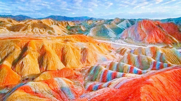 接着我们坐车去了张掖,到达张掖七彩丹霞地质公园,它是国内唯一的丹霞地貌与彩色丘陵景观复合区,是我国丹霞地貌景观中发育得最大、最好、地貌造型最丰富的地区之一,是中国彩色丹霞和窗棂状宫殿式丹霞的典型代表。大自然不用一根画笔就绘出了一幅七彩的山景,直令人感叹神奇。