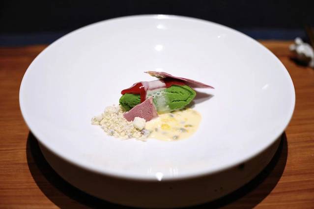 最后一道甜品,用青豆泥、沙拉酱、树莓脆片、坚果粉末制作面成,外表看似冰淇淋,实者是非常健康的食物,爱甜点的朋友可以来试试哦!