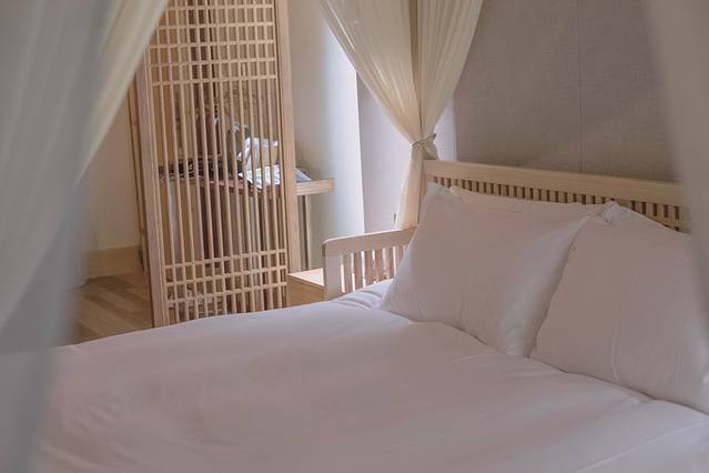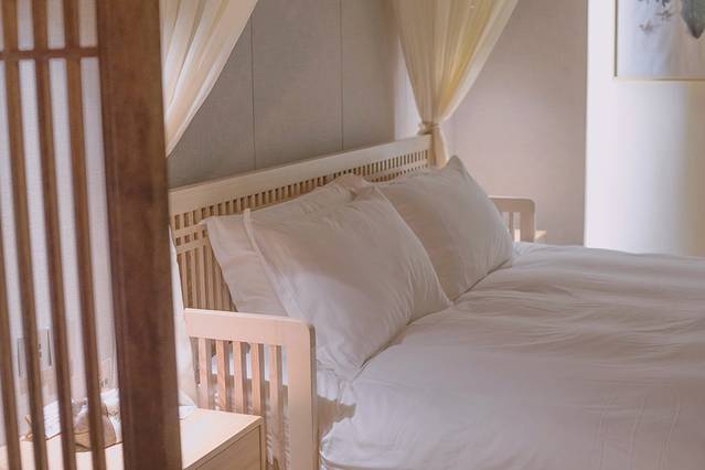 特别喜欢客房日式文艺的设计,木制的家居装饰,无不透露出简单大气的装修风格,民宿是在老房子的基础上改造的,保留了原有的古朴,又添加了旧木青石的元素,使整个房间都散发着独有的清幽气息,一点不老气沉闷。