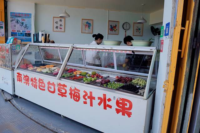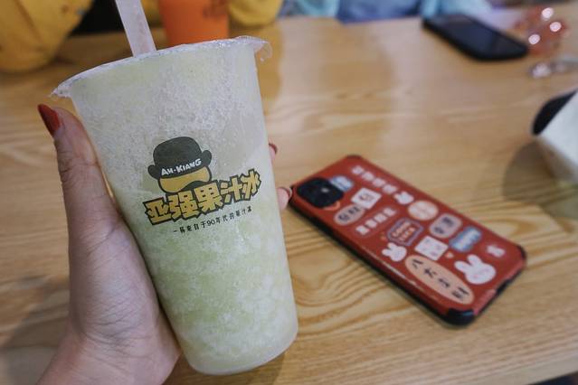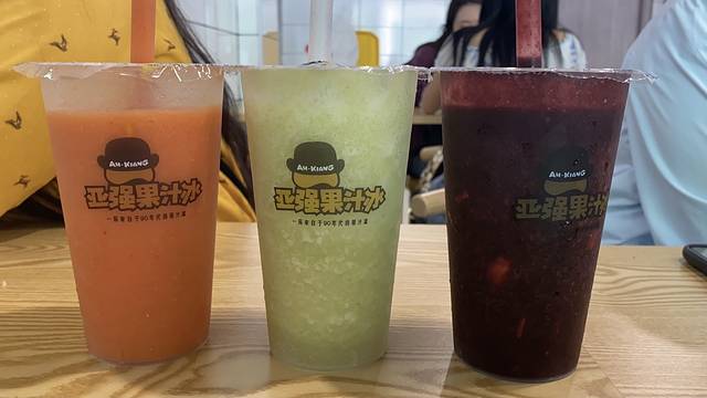 牛肉火锅是很好吃,但沙茶酱略咸。两个小伙伴带我去了她们昨天发现的宝藏果汁店———亚强果汁冰。