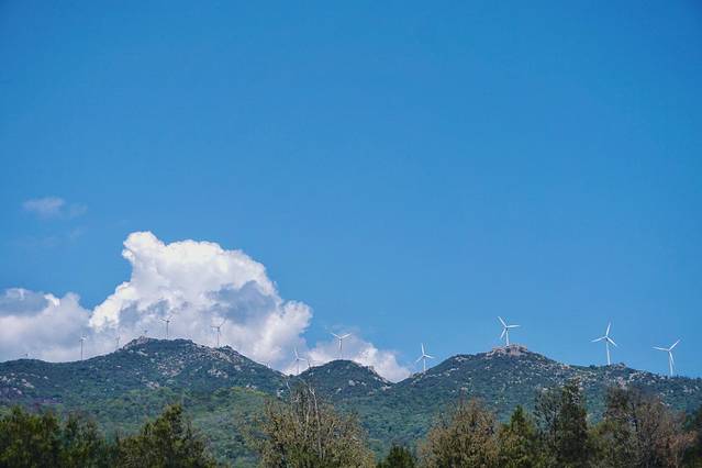从海边望向风车山,像漫画一样。美则美意,但中午的海边实在晒到爆炸。