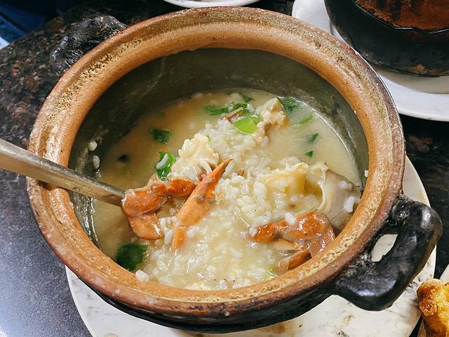 海鲜砂锅粥,点了三种口味,最好吃的是螃蟹+虾。
