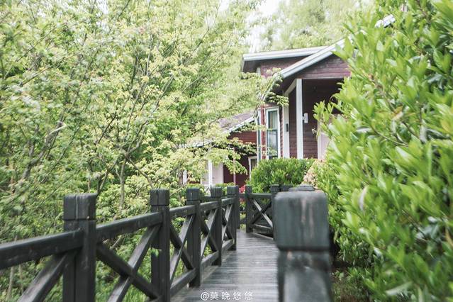 走过两旁栽种着花树的栈道小径,就像被这片绿色洗礼了一样,拂去一路风尘,安心地入住木屋,闲适地享受假期。
