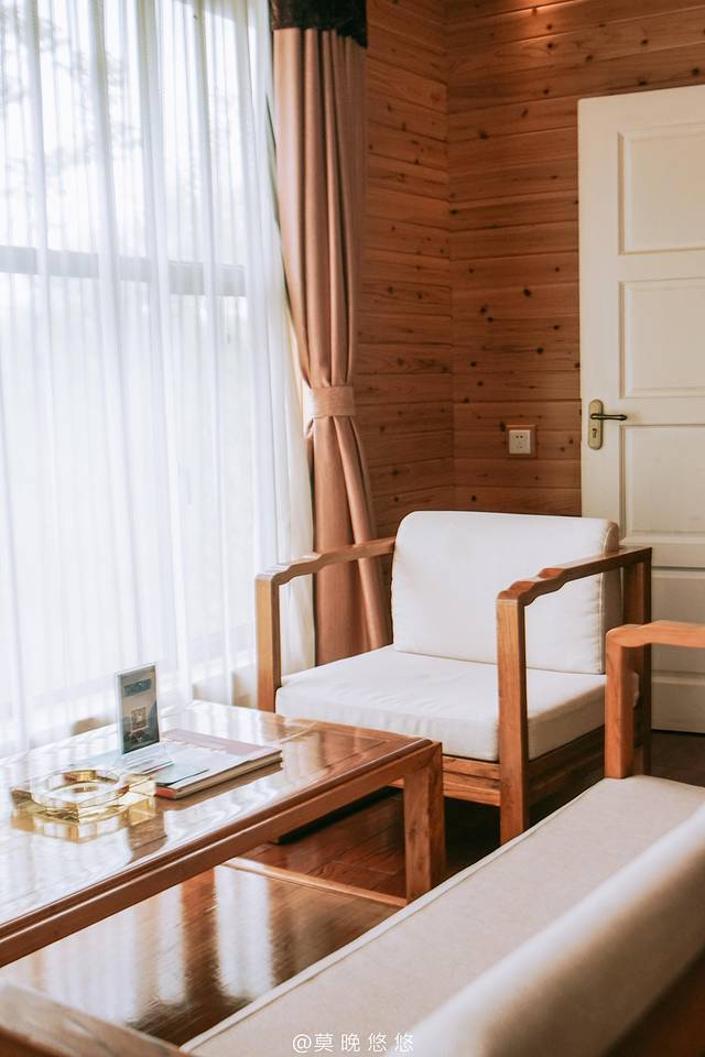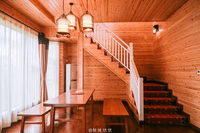 看出景区对原生态的完美追求,连室内都是原木装潢。没有过多的色彩和元素,去繁就简,返璞归真。风格简约大方,色调柔和温馨,全屋明亮干净,住在这里真的很舒服自在。