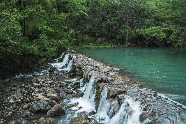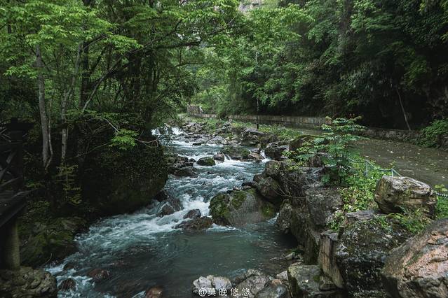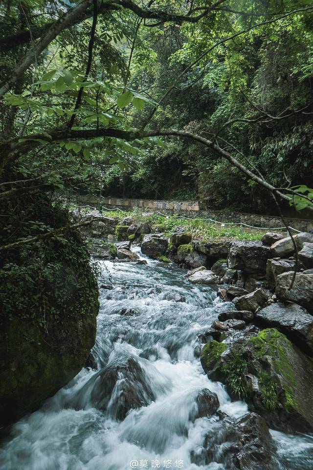 白浪翻涌,仿佛碧水中的一簇簇洁白的花。林中溪涧,潺潺流水俨然已经成为路上别致的景色,使得整个山谷充满灵动秀气、勃勃生机。