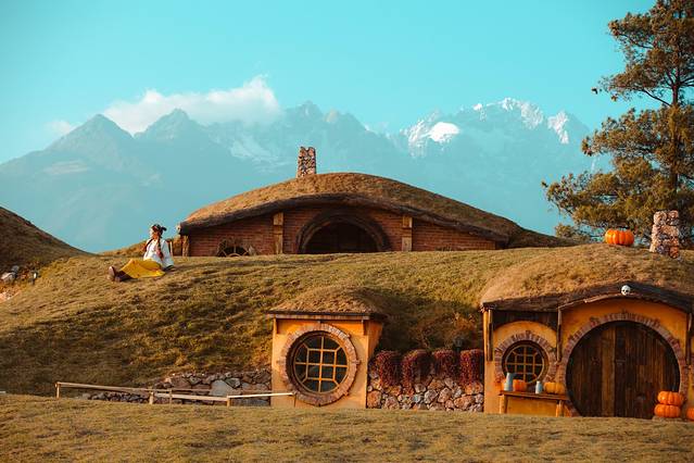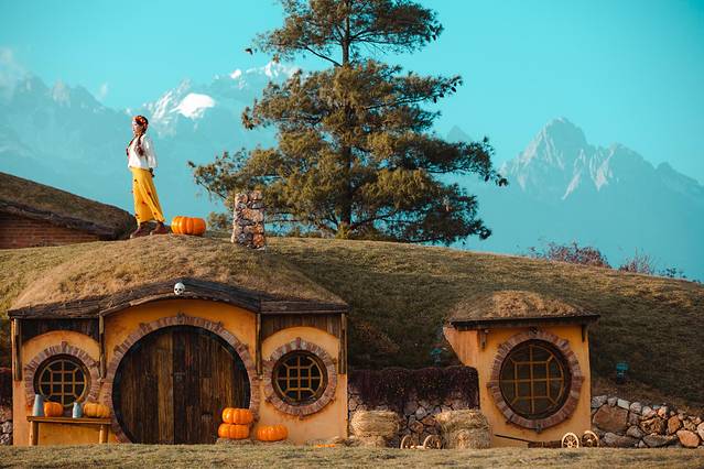 在有雪山,森林,湖泊的背景下,这里有非常适合拍照的霍比特树屋,巴厘岛鸟巢,正对雪山的木栈道,夏天还有一大片向日葵。