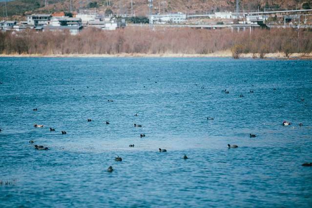 远山如黛,皑皑雪峰倒映于湖泊之中,这一季节,黑颈鹤、黄鸭、斑头雁云集于此,