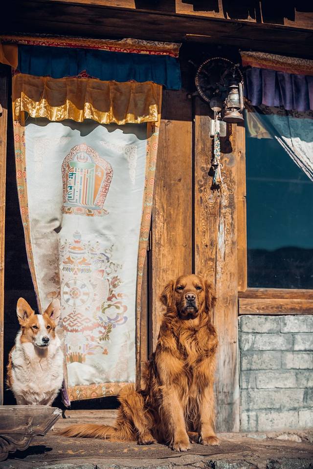 山谷,帐篷,日出,可爱的狗狗,远处的羊群和牦牛……