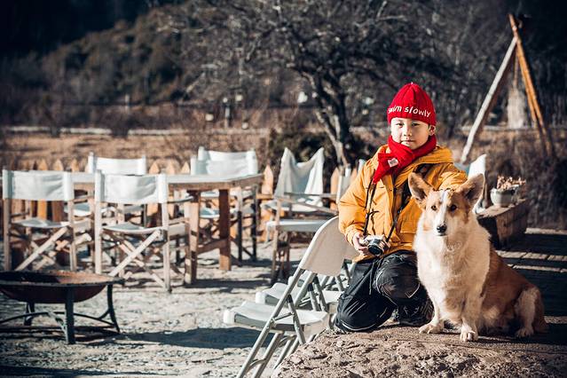 这里有好几条狗狗,胖嘟嘟的这条柯基名叫七七,也是酒店的团宠儿。