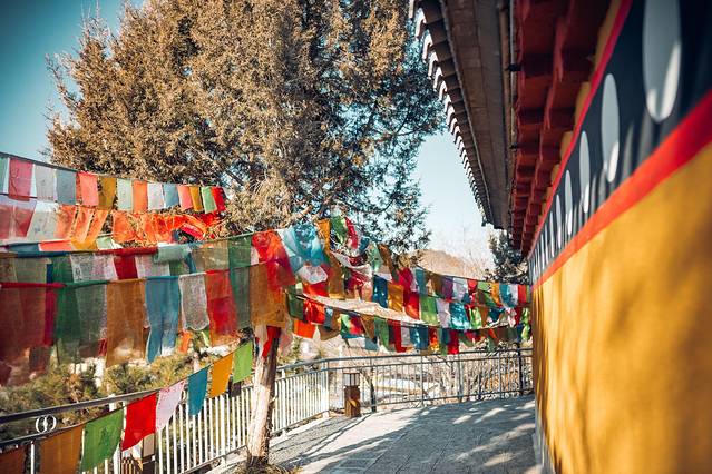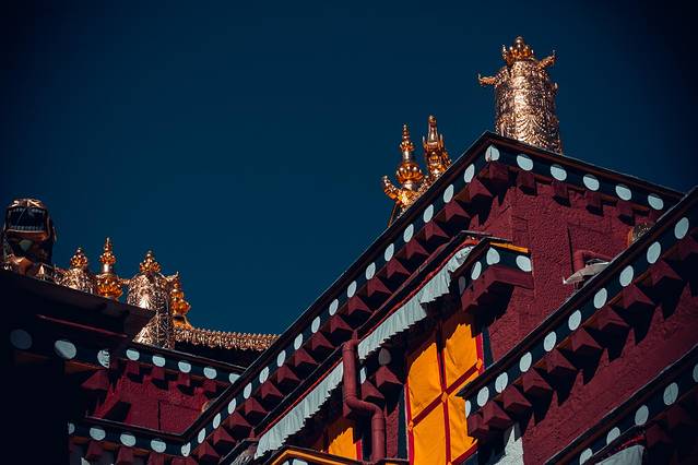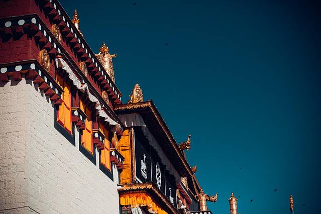 寺院荟萃了藏族宗教文化的精华。建筑高大雄伟,气势恢弘,庄严神秘;造型丰富多彩,金碧辉煌; 殿宇宽敞恢宏,壁画雕饰精美;殿中供奉的诸多佛像,诠释着佛经的丰富内涵。出于尊重,未在殿内拍摄。