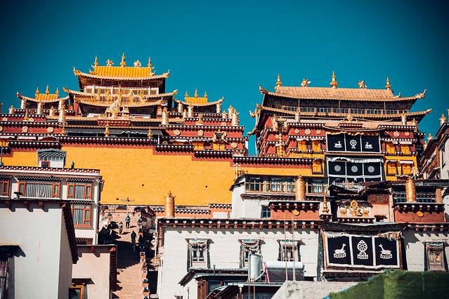 噶丹松赞林寺,又称归化寺,坐落在云南香格里拉(中甸)县城的佛屏山麓,是云南最大的藏传佛教寺院,也是川滇一带的黄教中心,被誉为“小布达拉宫”。