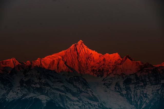 “日照金山”虽是一种自然现象,但它的寓意是唯独赋予藏传佛教的八大神山之首—梅里雪山的,看到梅里雪山日照金山当属大吉,可带来一整年的幸运。