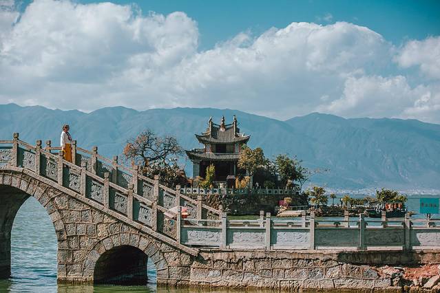 围绕洱海东边有双廊古镇,而西边有喜洲古镇,这两地景色各不相同,双廊以靠洱海自居,而喜洲则以青茶色田园自适。