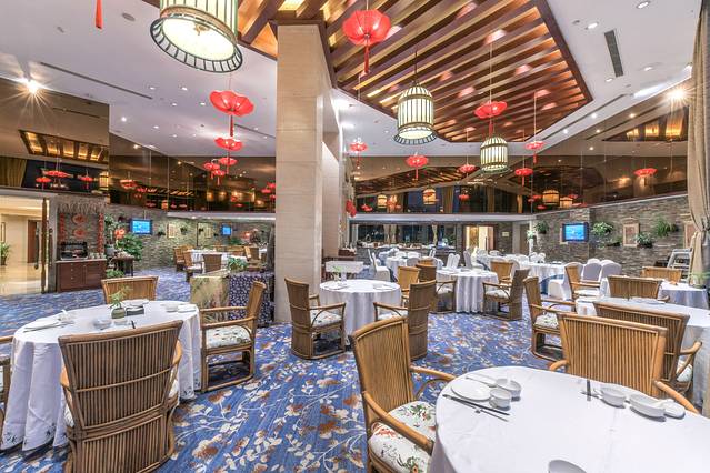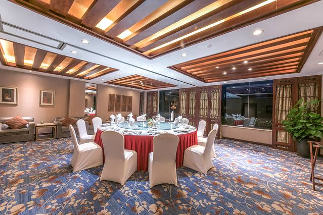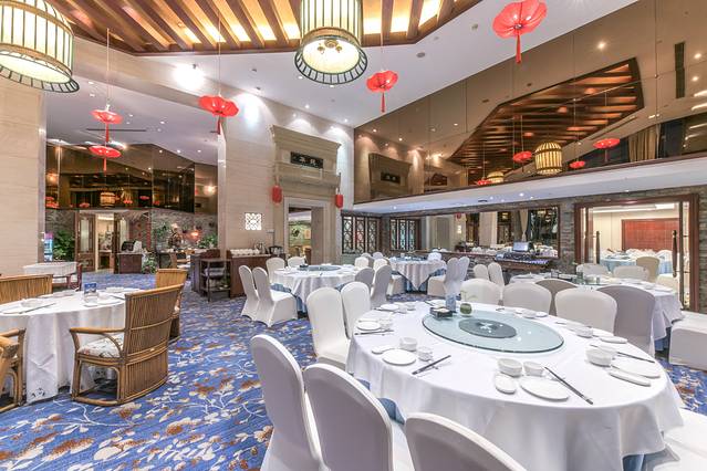华苑中餐厅是该酒店最主要的餐饮配套设施,内部设施高端、彰显着武夷山的文化特色,让人耳目一新,餐厅主要分为食堂区与特色包厢区,预估整体面积不低于500㎡。高级地毯铺设的地面有着奢华酒店的氛围。以最科学合理的灯光设施营造温馨、舒适而大气的环境,让出差的同时也能享受度假的舒心。