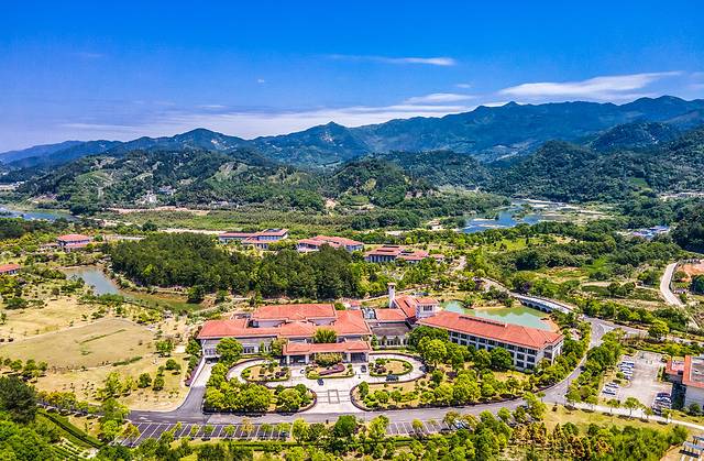 武夷山大红袍山庄占地面积很大,但客房总数仅有区区的一百多间,房间都最大宽敞与舒适。通过航拍照片可以看得出整个山庄的公共区域非常大,客房仅有几栋楼且皆为3层高的楼房。山水环抱的格局让人真正领略到什么才是真正的度假山庄。