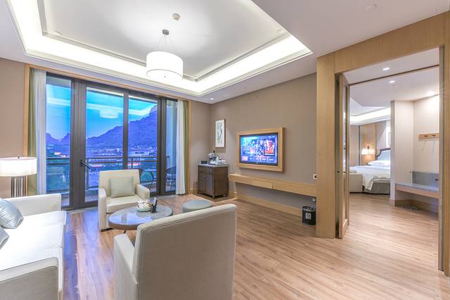 现在来看看客房的设计与环境吧!山野君下榻的是豪华观景套房,该房型配有办公设备,卧室与浴室完美分开,很适合商务出行的人群们。配套设施完善就适合办公,并拥有武夷山一线观景视野,感觉非常不错,让人心神舒畅。你们喜欢这种房型不啦?