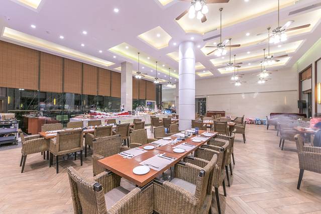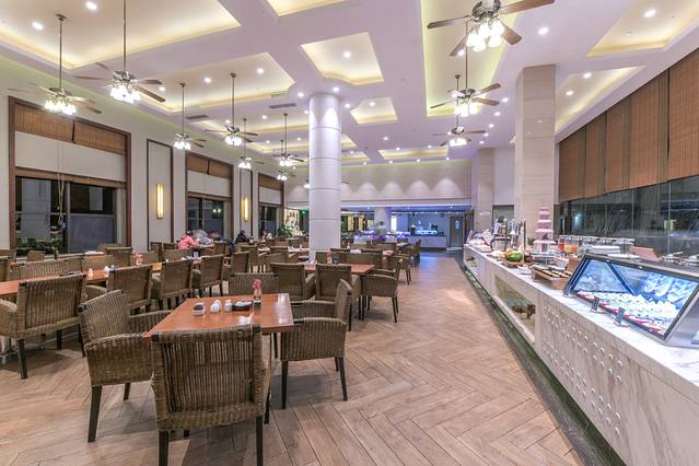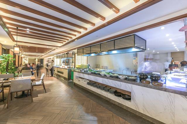 这家自助餐厅以简约时尚风为格调,更大可能的追求舒适而宽敞的用餐空间,它成为食客们商务出差与休闲度假的理想选择。无论是住店客人还是非住店食客们都可享用丰盛的下午茶、品尝各种美酒以及特色自助餐。