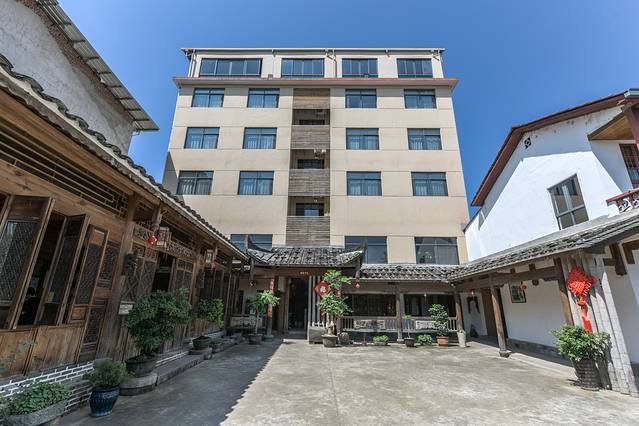 山野君进入世德茶院民宿的院子后第一时间看到的就是六层高的楼房,估计就是该民宿的客房。已经安排好住宿的我却还是带着好奇心进入并参观了,主人看到我们进来后就很客气的招呼我们并请我们到室内小坐一会儿。