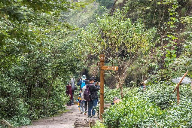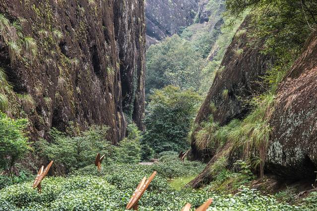 受经纬度、湿度与海拔等苛刻条件的影响,大红袍生长的原产地有着无比清幽的环境,进入山谷犹如到了与世隔绝的地方一样,走在林间显得格外静谧,甚至连自己呼吸的声音都快要听见了。可想而知,大红袍景区是多么的幽静了。