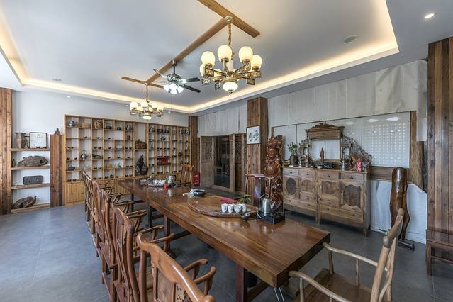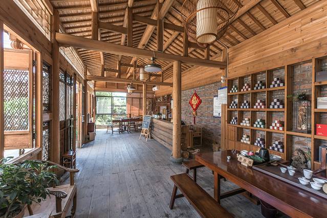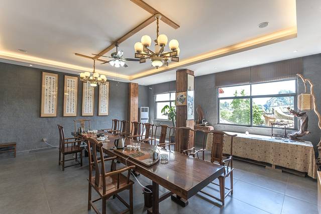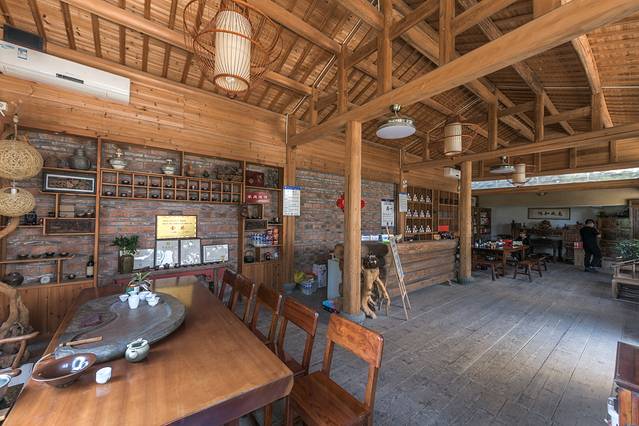 为了更全面的展示茶室的环境,山野君用超广角镜头拍照。无论是从设计建造还是规模大小都非常不错的吧?所以山野君说世德茶院是武夷山最具情怀的民宿还是没错的。