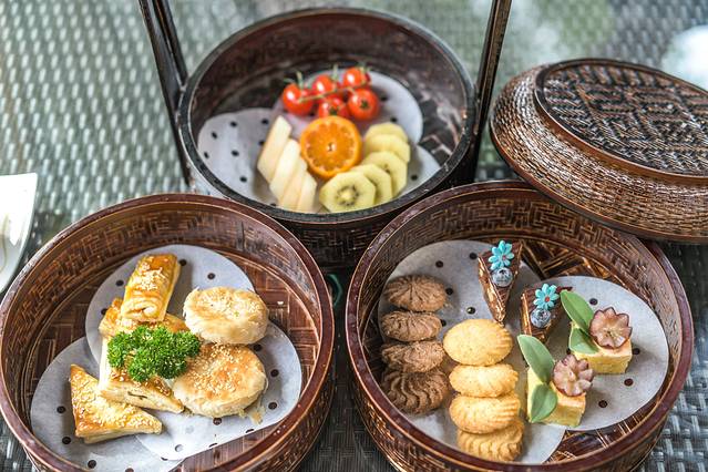 武夷山悦华酒店的华苑中餐厅最特色的小吃莫过于港式茶点,精致而丰富的茶点可以作为中饭使用。港式茶点比较清淡、偏甜味,如果习惯了重口味的话来尝这些茶点可能就比较不适合了。山野君推荐可以尝试一下,不合适再更换其他种类的食物。
