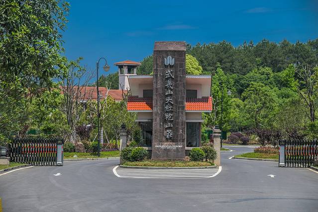 福建大红袍山庄地处武夷山脚下,所以也叫发武夷山大红袍山庄。它利用山清水秀的武夷山自然生态与绝佳的风水宝地,并注入岩茶的茶饮文化,致力于打造武夷山脚下最宜人的度假村式的商旅酒店。身在武夷山脚下的公路边即可欣赏花园般的度假村,顿然间就觉得很心动。