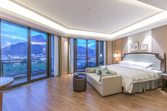 傍晚时分的卧室观景超赞,山野君进入卧室的刹那间被如此的视野所震撼!没想到该酒店客房环境这么好、观景这么赞,住在室内也能欣赏武夷山的绝美风光,像是把自己写入画卷里一样,感觉真是赞爆了。在商务出差的同时还能有这般度假生活的享受,能不让人开心吗?