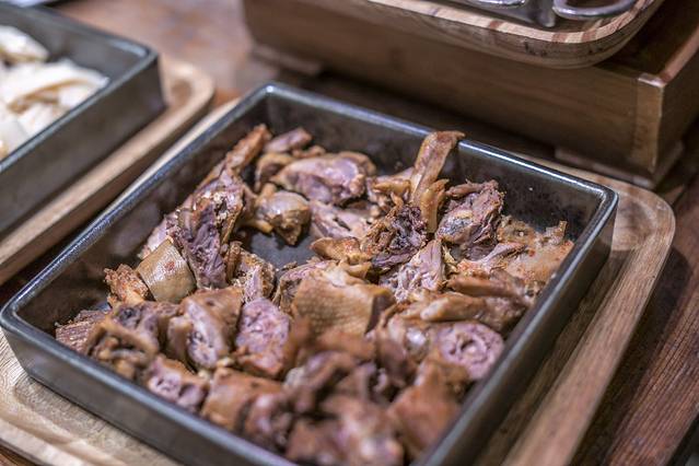 华苑中餐厅还有一处自助式的领餐,比如水果、花生、卤笋以及烤鸭等食物,用餐的客人可根据自身的需求酌情自取这些食物。