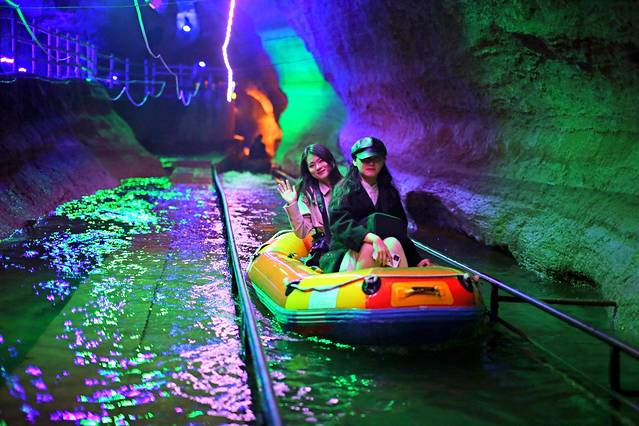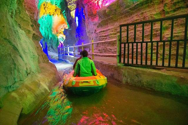 进入地下大峡谷,最有意思的玩法,莫过于在地下暗河里漂流。