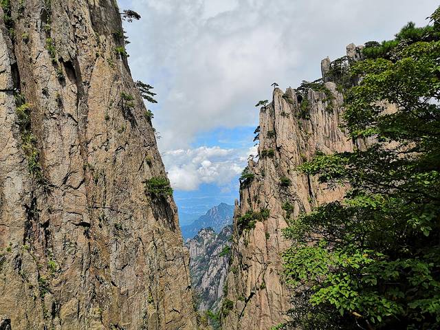 早餐后到汽车总站坐车出发前往黄山,到达后山(先在换乘中心或有寄存行李的地方寄存行李,轻装上山)。乘景区交通车至索道站(可以前山上后山下,也可以后山上前山下,我们是后山上前山下)前山险峻,后山平缓。上到山上,放好行李,就出门前往西海大峡谷,由于是下午了,时间有点赶,西海大峡谷上山的轨道6点就停运了,必须赶在6点前下去大峡谷,所以我们都没有时间慢慢欣赏风景了,紧赶慢赶的到达峡谷下,坐了最不能错过的峡谷轨道上山。这个轨道大家一定得去坐,上来的风景是真的不一样哦。(宿山上白云宾馆大通铺150元/人)。