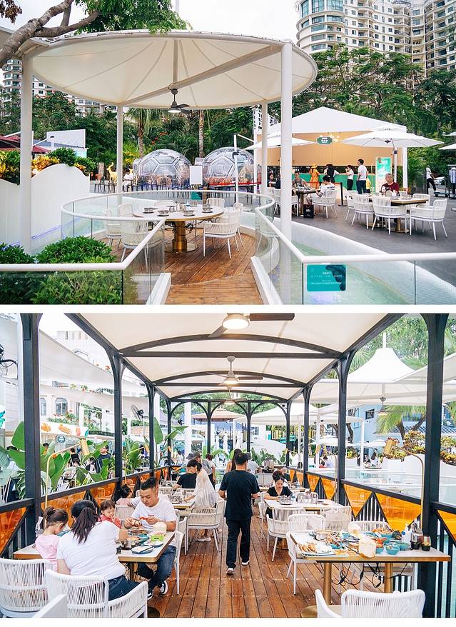 当夜晚开灯之后,烟波荡漾,水汽朦胧,仿若人间仙境,畅享瑶池盛宴。其功能区的划分非常鲜明,是按照食材来的,主要有如下几个:生猛活海鲜区、烧烤区、日式刺生区、冰淇淋西点区、酒水饮料区、水果区等。