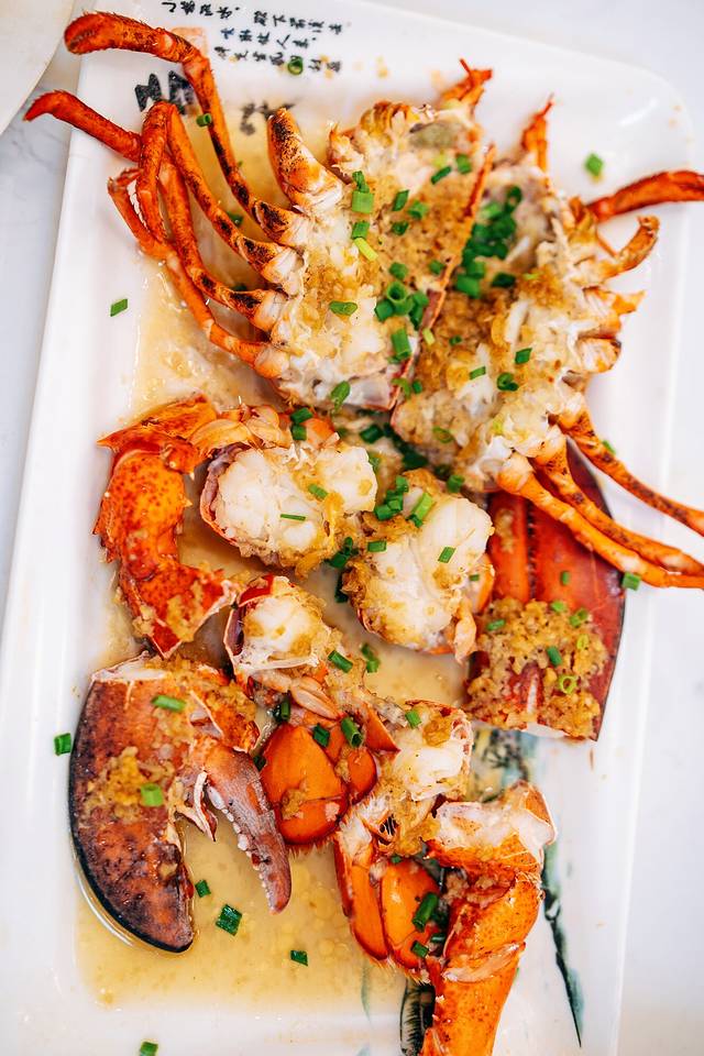 蒜蓉蒸 波士顿 龙虾:好大一只,挑的时候就相中了它的紧实肥硕,入口新鲜,肉质Q弹,鲜美的滋味在口腔绽放。