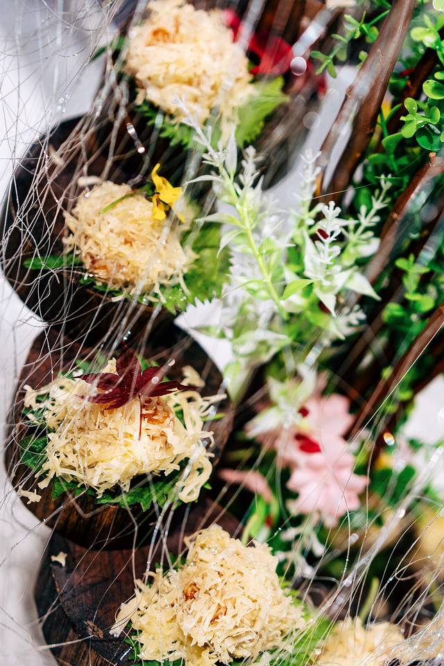 和风细柳牛油果芥末虾球:超长的一个名字,上桌时超长的高度也着实震惊到我,如 玉树 临风一般高我半头,身上挂着仙缕般的“真丝外衣”。它的登场吸引了所有人的目光,真真是一颗 大树 向你袭来!它的精华在内部寻梯陈列的一个个小可爱,咬上一口,外皮酥脆,里面是芥末与牛油果混合调味的饱满虾球,新鲜又Q弹,香气格外浓郁,是我喜欢的丰盛味道。