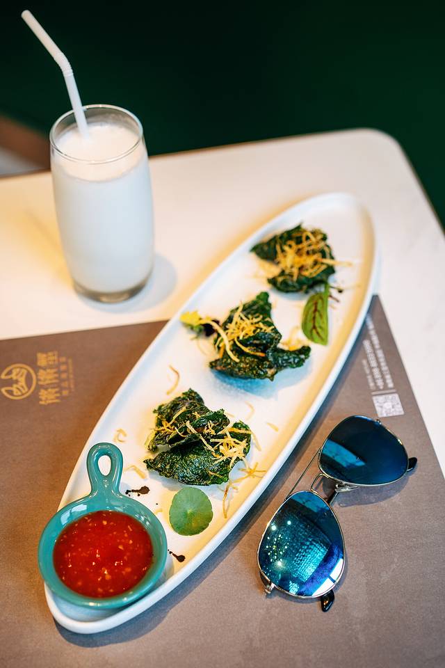 捞叶虾饼:外层是山捞叶,里面是鲜嫩虾肉,煎炸后两相混合出奇特的焦香,再搭配上红色特制酱汁,可以说,这种 东南亚 一般的海岛味道,非亲临此地,是无法摹刻的经典!