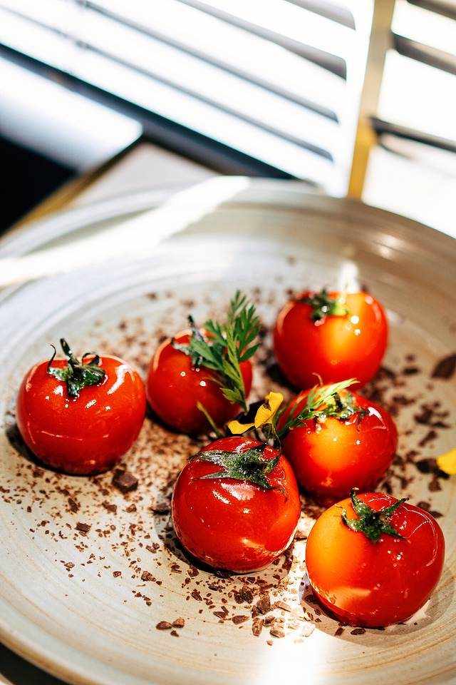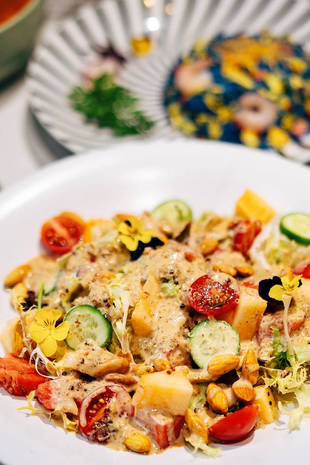 番茄脆果 沙拉 :颜值超高的一款 沙拉 ,外脆里嫩,口感非常丰富,而且它调教出了西红柿最鲜艳的色彩和质感。