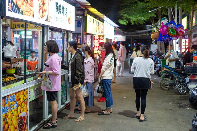 几条小街密密麻麻的摊贩,人声鼎沸,食客们大说大笑,享受着夜晚的美好,放松着一天的疲累。