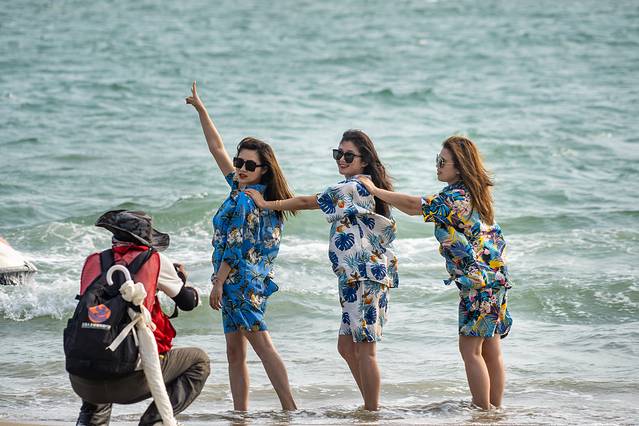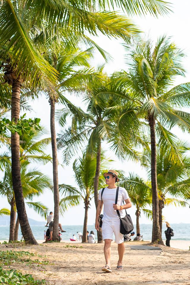 距离大海非常近,弯曲优美的海岸线上,很多人在踏浪拾贝,拍照留念📸,——可以说,这种闲适与明媚的生活,是属于 三亚 的无尽魅力,尤其全国都处在乍暖还寒时候。