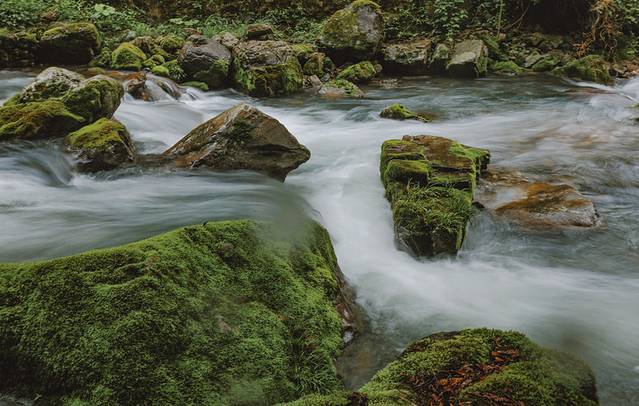 高大的丛木,清澈的溪流,温柔的山风吹过,拂动树叶,沙沙的发出声响,山林上掠过一群飞鸟,一切都显得那么自然平静,这一刻只有放松的享受。
