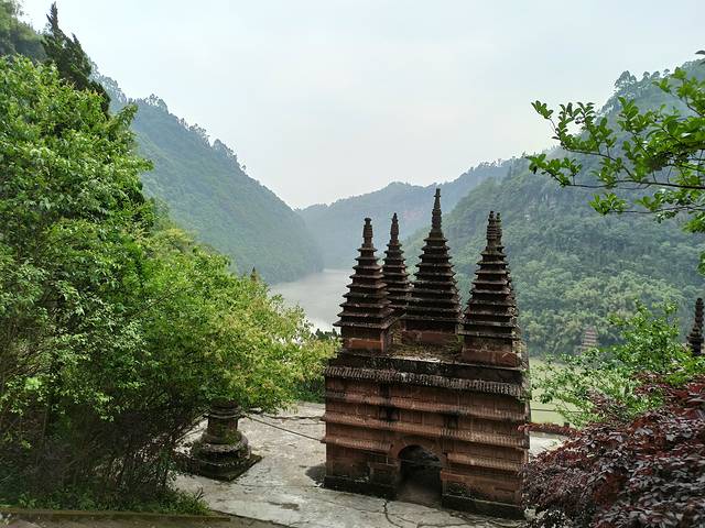 槽渔滩素有“小柬埔寨”之称,位于洪雅境内。古老的桫椤树群影映着碧绿的水面,百余座佛塔矗立在江边,秀丽的自然风光和丰富的文化历史交相辉映,青山绿水佛塔构成独特的江峡风光。