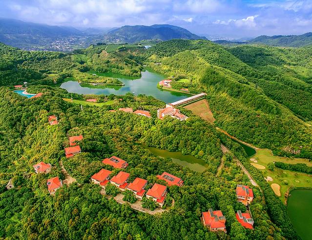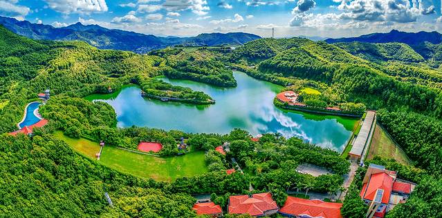 位于广东省梅州市梅县区雁洋镇南福村的雁山湖,山脚下就是充满客家风情的围龙屋,山上是万亩森林,人文和自然都融合得十分和谐。